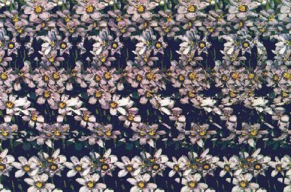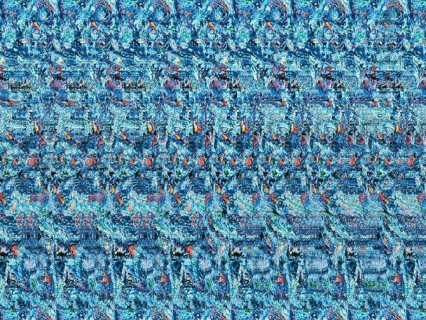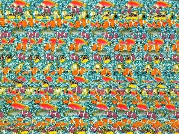 Как смотреть стереокартинки? Вы смотрите на рисунок, но зрение сфокусировано не на самом рисунке, а на точке расположенной позади рисунка.